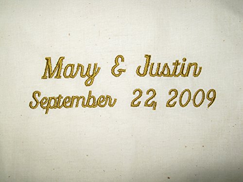 -. Feature : Embroidered 100% cotton muslin bag 70" x 24" x 10" / Includes: 17" Muslin padded hanger, acid-free tissue, ID tag , White gloves. / Makes a perfect shower or wedding gift! / 16 colors and 4 fonts to choose from for customization. 10 days for delivery. / Comes in reusable packaging of a cotton bag.