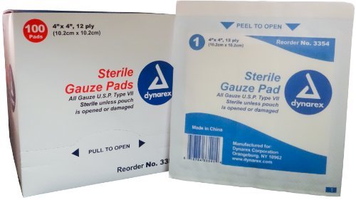 -. Title : Gauze Pads Sterile Sponges 4 Inch x 4 Inch 100 Per Box by Dynarex - MS42140