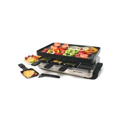 Swissmar KF-77081 Stelvio 8-Person Raclette Party Grill with Granite Stone Grill Top, Brushed Stainless Steel