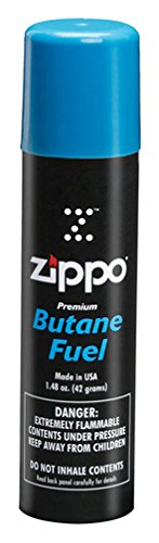 Zippo Premium Butane Fuel will keep your BLU lighters, Flex Necks, Candle Lighters and Outdoor Utility Lighters working at their best. Zippo Premium Butane Fuel comes in a 1.48 oz. (42 grams) can.Feature