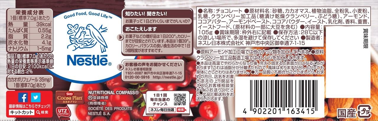※ "Kit cut chocolate moreson" is a product that topped with plenty of luxurious materials such as cranberry and almond to mellow Couverture milk.