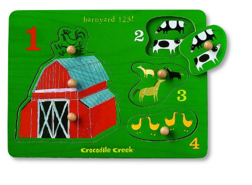 -. Binding : Toy -. Brand : Crocodile Creek -. EAN : 0732396287016 -. Feature : Great puzzles for early learning and play / Big wooden knobs are perfect for little fingers / Beartifully-illustrated with hidden pictures underneath / Ideal for ages 2 and up -. Label : Crocodile Creek -. Manufacturer : Crocodile Creek -. Model : 2870-1 -. MPN : 382870-1 -. PartNumber : 382870-1 -. ProductGroup : Toy -. ProductTypeName : TOYS_AND_GAMES -. Publisher : Crocodile Creek -. ReleaseDate : 2011-03-25 -. SKU : JP-WCKK-E8TA -. Studio : Crocodile Creek -. Title : Barnyard 123 Wooden Puzzle -. UPC : 732396287016