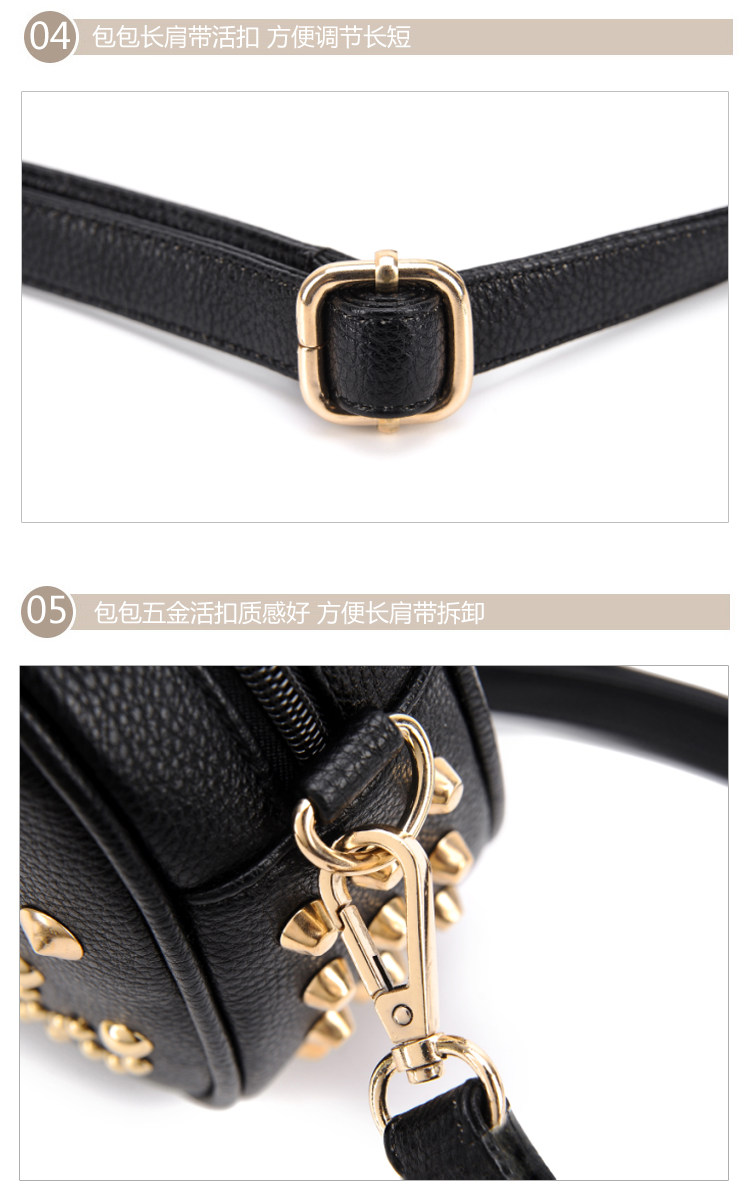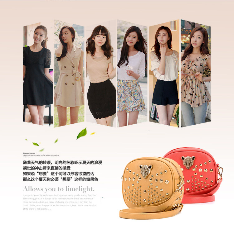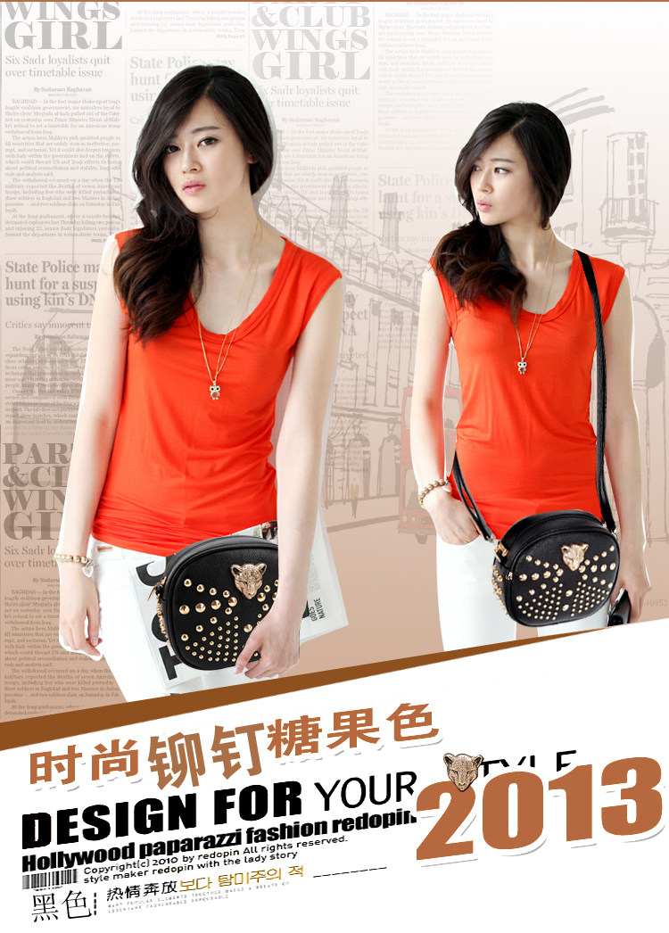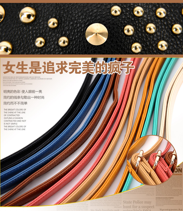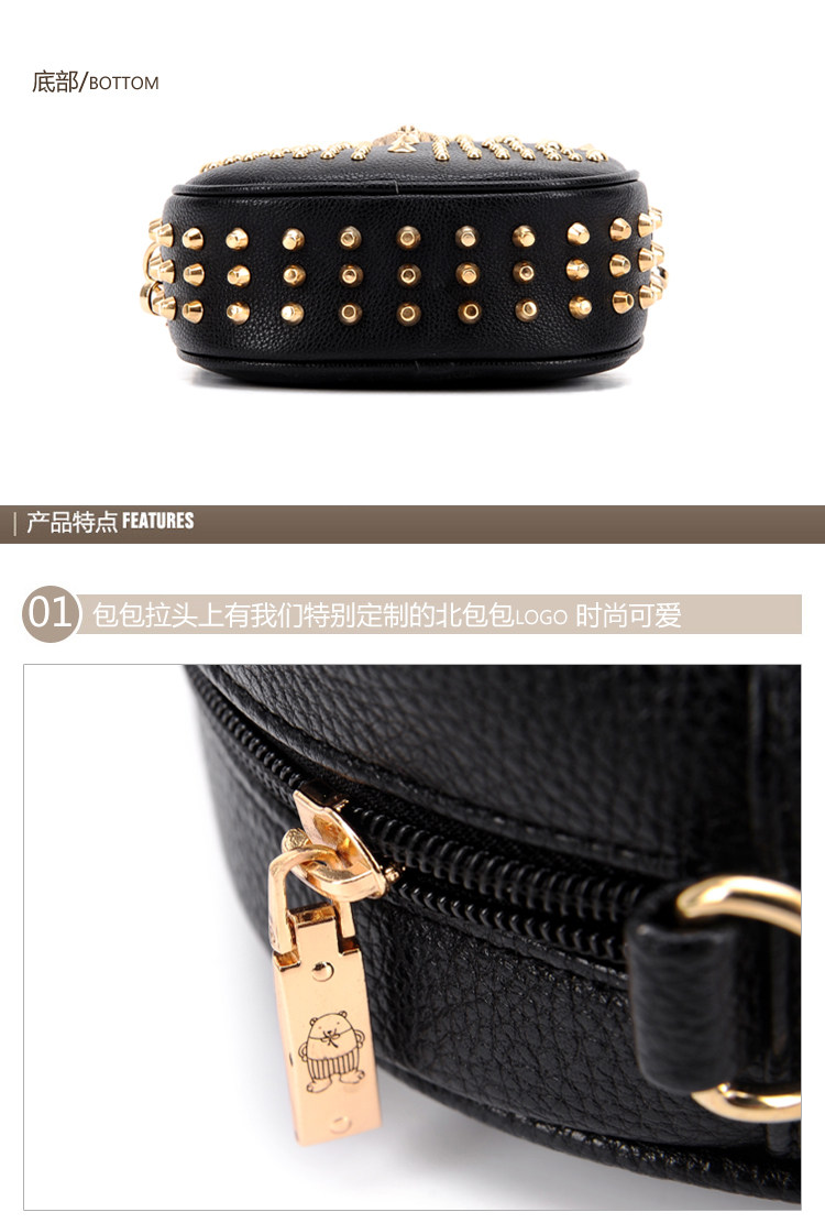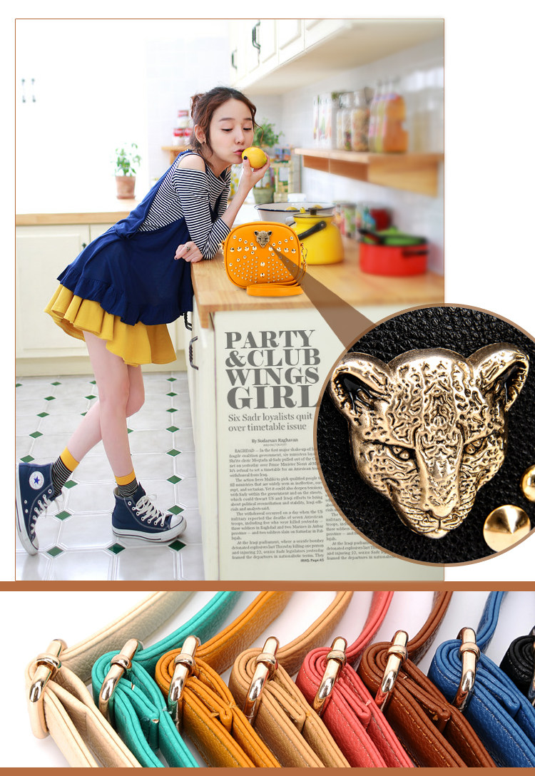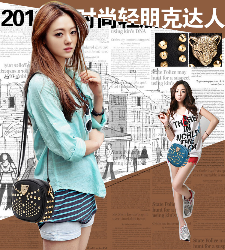 新款潮欧美街头朋克风豹头柳钉包。内部1个拉链袋,2个置物袋