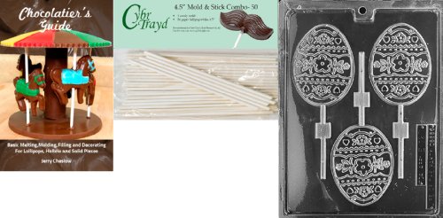 Cybrtrayd 45St50Bk-E120 'Large Egg Lolly' Easter Chocolate Candy Mold with 50 4.5-Inch Lollipop Sticks and Chocolatier's Guide
