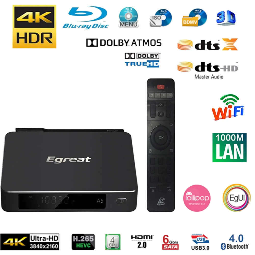 Smart 4K UHD Media Player With HDR. Supports Blu-ray ISO Playback, All Kinds of Blu-ray Menu Navigation, HD Audio Passthrough, 1080P Hardware Acceleration, 3D Blu-ray ISO Playback, DVD Menu Navigation, Access Home Sharing Server, Add-ons and OTA Update Support.