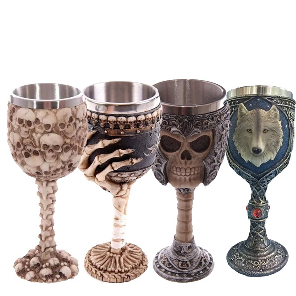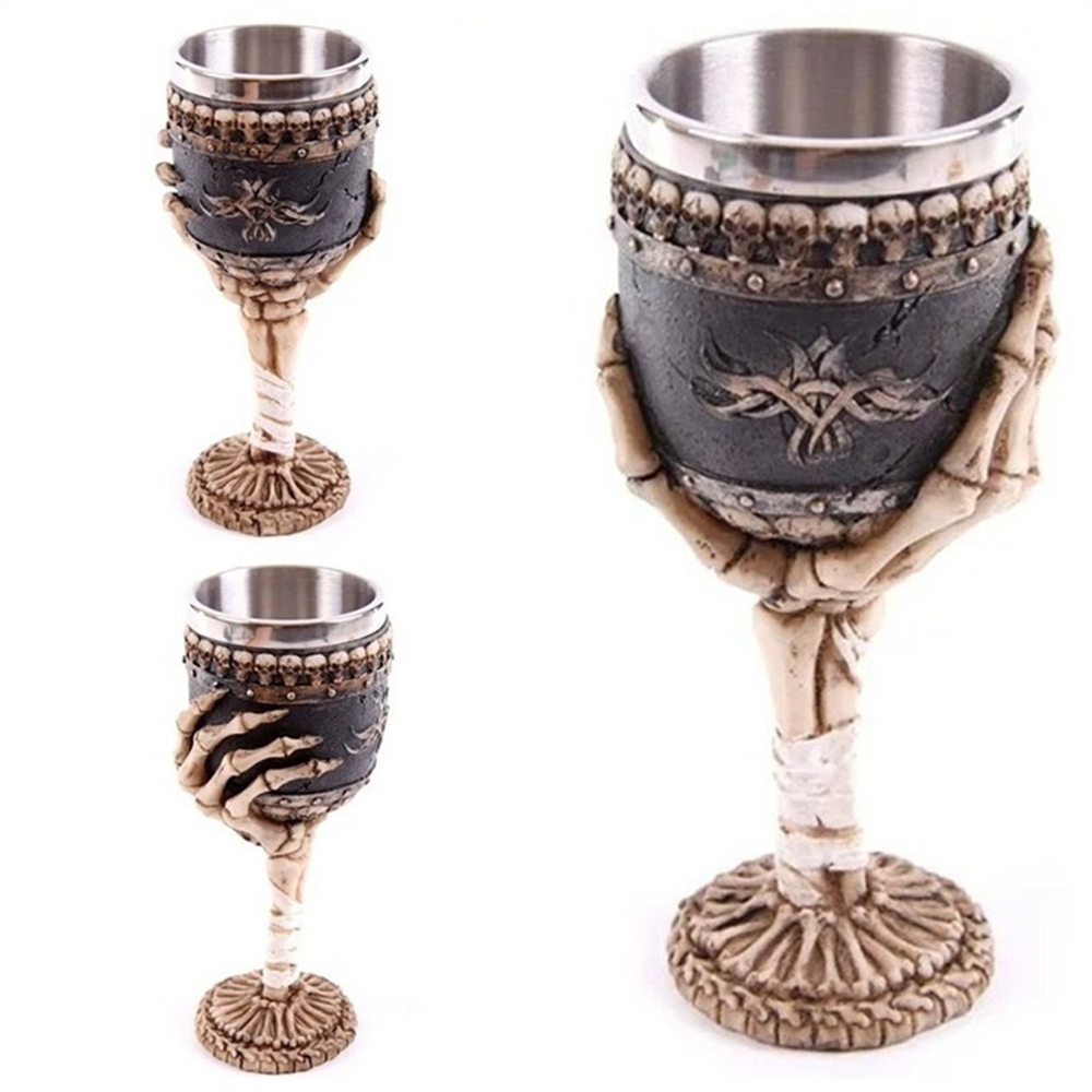 Creative Horror Skull Hand 3D Goblet Resin Stainless Steel Wine Cup For Halloween Party Decor