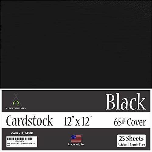 Black Cardstock - 12 x 12 inch - 65Lb Cover - 25 Sheets
