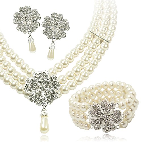 -. Feature : 〜大切な人への贈り物に最適なギフトボックス付き〜 / 【付属品内容】品質保証書、収納BOX / 【サイズ】パール:8mm ネックレス円周:40cm ブレス円周:16cm ピアス(花):3cm / 【重さ】ネックレス:115g ブレス:50g ピアス(イヤリング):10g【素材】合金、人工パール