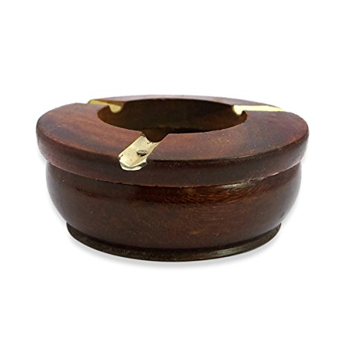 -. Title : Christmas Gift Ashtray for Outdoors and Indoors Large Wooden Ash Tray with 3 Cigarette Holder Slots & Decorative Brass Inlay Work Unique Smokers Gift
