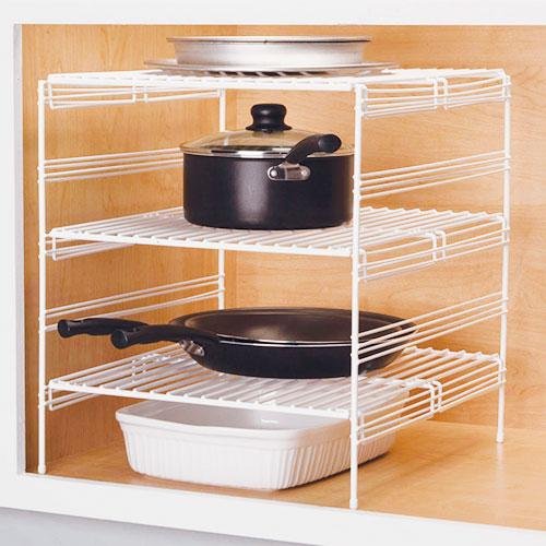 Studio : Panacea Grayline Publisher : Panacea Grayline Binding : Kitchen Product Description This Adjustable Cabinet Helper is perfect for storing any number of kitchen items from pots and pans to cutting boards and cups. It features 3 adjustable shelves to maximize storage capacity and customization. A larger design makes it perfect for base cabinets. Its PE coated steel construction makes it sturdy enough to handle virtually any load. 0