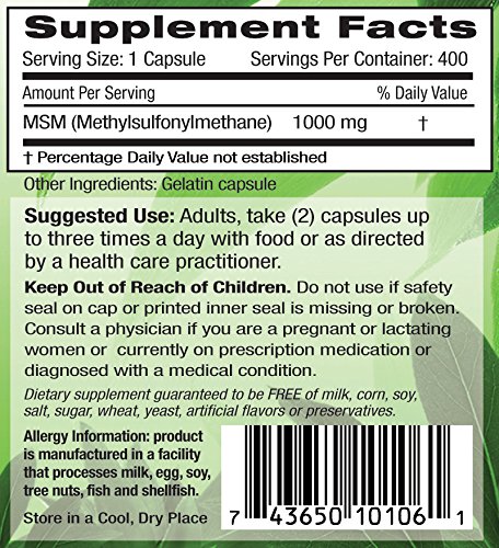 MSM is commonly taken for joint problems, aches and pains, and allergy season support. MSM also helps nourish the skin and remove toxins from the body.