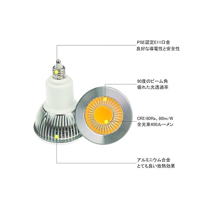 원본상품명: Muslish LED電球 E11 LED スポットライト 角90度 100V AC 50W形相 5個入