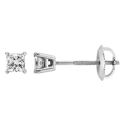 -. Title : IGI Certified 1/2ct tw P.R.INCESS Cut Diamond Stud Earrings in 14K White Gold(Clarity I1-I2)