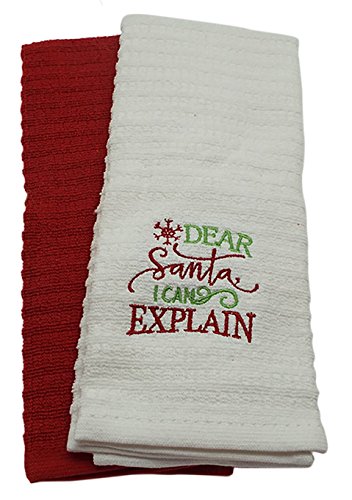 2pk Embroidered Christmas Kitchen Towels (15" x 25") - "Dear Santa I Can Explain"
