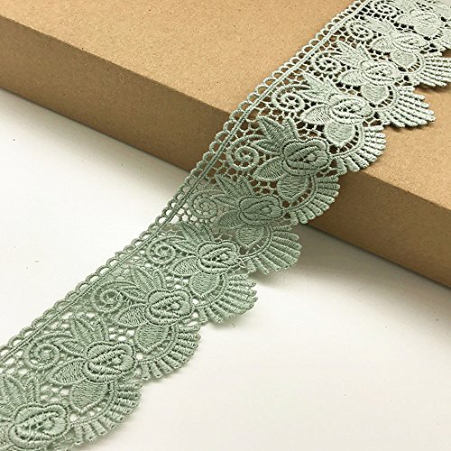 6CM Width Europe Rose pattern Inelastic Embroidery Trims,Curtain Tablecloth Slipcover Bridal DIY Clothing/Accessories. (4 yards in one package)(Light green)