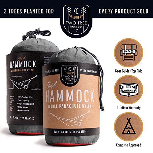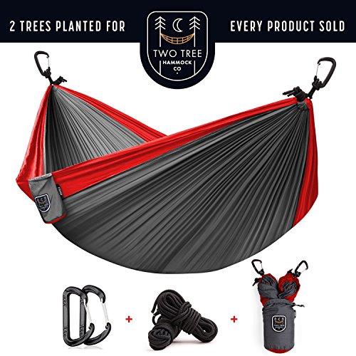 Two Tree Hammock Co. - ORIGINAL, Parachute Nylon Double Camping Hammock with Upgraded Aluminum WireGate Carabiners - Planting Two Trees with every Hammock Sold!