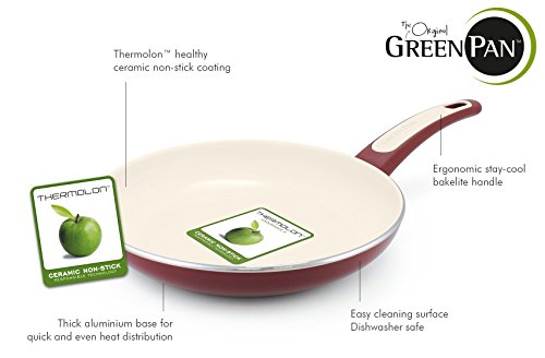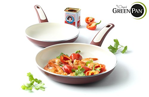 The GreenPan Focus range is designed for a trendy kitchen without compromise. The aluminum 7" and 10" Ceramic Non-Stick Open Frypan Set with a burgundy exterior body, combined with the cream Thermolon ceramic non-stick coating is a favorite amongst foodies and design addicts. But let's not judge the collection by its color, because the Focus range has a lot more in store. It is dishwasher safe and extra convenient thanks to the stay-cool Bakelite handle. Complete with a limited lifetime warranty for worry-free cooking. In short: a trendy and healthy companion in any kitchen!Feature