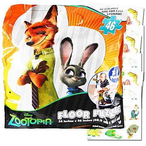 -. Feature : Disney Zootopia Floor Puzzle for Kids. Giant Zootopia floor puzzle fun for toddlers and kids. / The Zootopia giant floor puzzle measures 3 feet by 2 feet -- big fun for little ones. Features Zootopia favorites from the movie. / This Zootopia puzzle for kids and toddlers includes 46 large pieces and can be assembled on the floor or on a large table. / Includes bonus zoo sticker pack. This floor puzzle works great for Zootopia birthday parties and party supplies. / The perfect gift for any fan of Disney Zootopia toys and games!