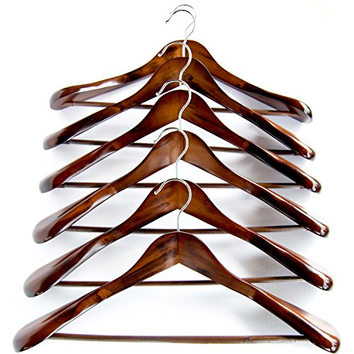 SET OF 6 WOODEN HANGERS FOR SUITS – Proudly display a professional wardrobe with luxury style and design. With our customers in mind, each boxed set is securely padded for protection during shipment.