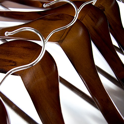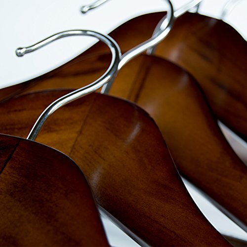PREMIUM FINISH – Each wooden hanger is finished in rich light walnut which accents the wood grain, and a layer of gloss for absolute beauty. The art of this craftsmanship defines sophistication.