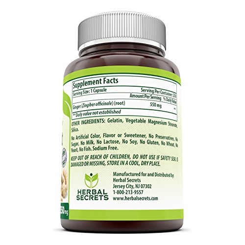 -. Binding : Health and Beauty -. Brand : Herbal Secrets -. EAN : 0810180023740 -. Feature : Ginger root eases the discomfort associated with travel and stimulates digestion to promote gastrointestinal comfort. / Support healthy cardiovascular function. Encourage balanced immune responses. / All Herbal Secrets products are manufactured in accordance with Good Manufacturing Practices (GMP), among the highest standards in the world. / All our products are proudly made in USA with Guaranteed Purity & Potency. We offer best quality products for the best value. All our products are Third Party Tested. We do not compromise on quality, our products are free of Artificial ingredients, Stearates, Sulphates, Dioxides and Laurates -. Label : Herbal Secrets -. Manufacturer : Herbal Secrets -. ProductGroup : Health and Beauty -. ProductTypeName : HEALTH_PERSONAL_CARE -. Publisher : Herbal Secrets -. Studio : Herbal Secrets -. Title : Herbal Secrets Ginger Root 550mg 250 Capsules- Soothes Upset Stomach*- Helps to Reduce Nausea*- Supports Healthy Cardiovascular & Immune Function* -. UPC : 810180023740