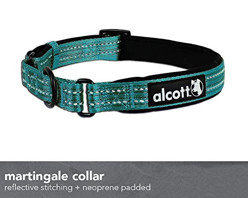 Studio : PAW - Pet Adventures Worldwide Publisher : PAW - Pet Adventures Worldwide Binding : Misc. Product Description Alcott Adventure Martingale Collars are designed for a lifetime of adventure! Featuring highly visible reflective stitching and super comfortable black neoprene padding, these adjustable collars have an integrated black metal D-ring for a secure leash connection walk after walk. If you're looking for a more comfortable alternative to a choke collar or if your dog slips out of their regular collar, then a martingale collar is a perfection solution! They are available in 3 sizes and 5 vibrant nylon colors that have a subtle chevron weaving pattern. Small collars have 5/8" wide nylon and adjust from 10" to 14", medium collars have 3/4" wide nylon and adjust 14" to 20" and large collars have 1" wide nylon and adjust 18" to 26". Matching nylon leashes, harnesses and retractable leashes are also available!. 0