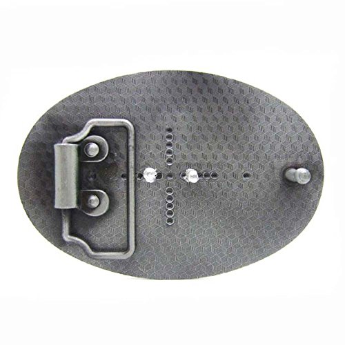 This belt buckle Measures approximately 4 inches by 3 inches