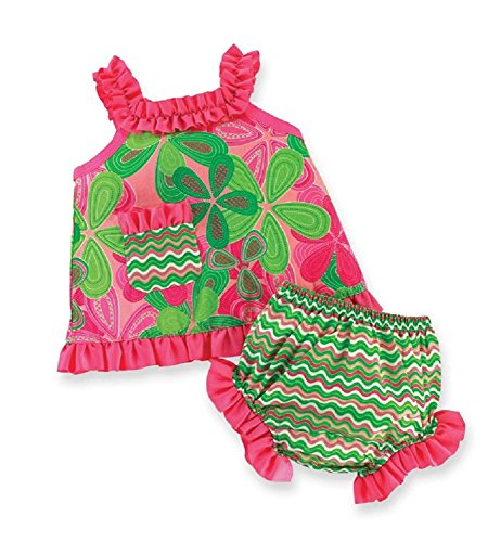 -. Title : Mud Pie Lily Pad Daisy Crochet Pinafore & Bloomer Set