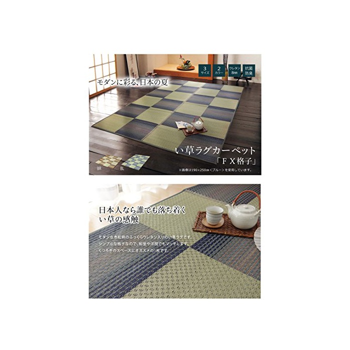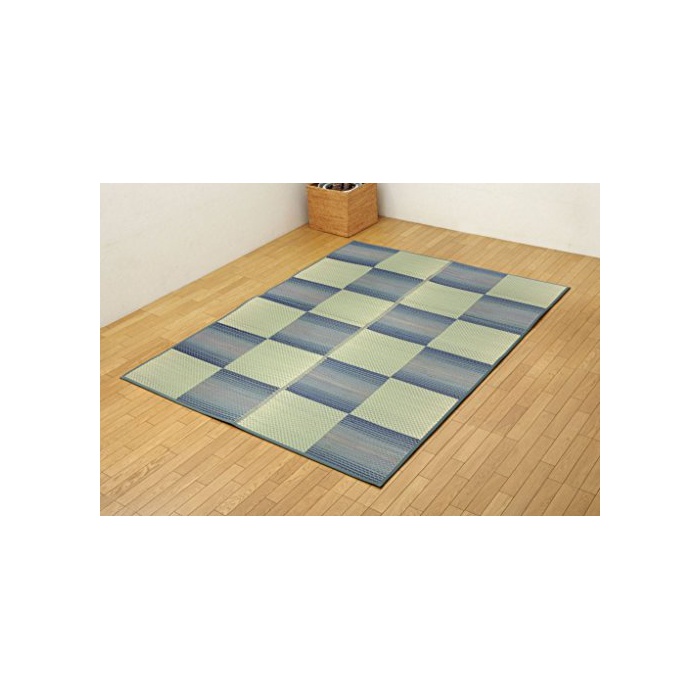 원본상품명: ★イケヒコ い草ラグ ラグ カペット 2 ふっくら ボリュムラグ 幾何柄 『FX格子』 ブル 約191×191cm (裏面:滑りにくい加工)