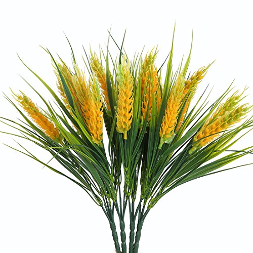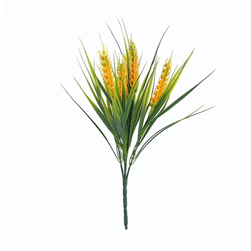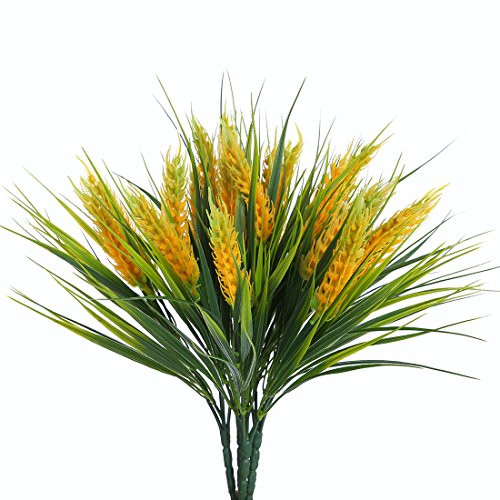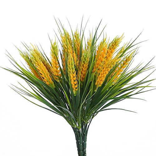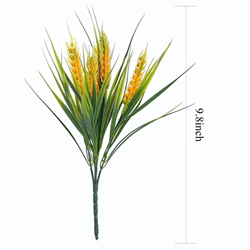 Artificial Plastic Autumn Wheat ,JUSTOYOU 4pcs Fake Plants Grass for Landscaping Indoor Outside Home Garden Office Balcony Wedding Decor (Yellow-Green)