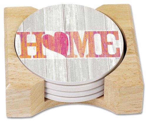 - Coasters are natural stoneware with decorative transfer print