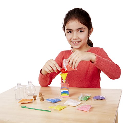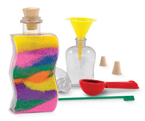 Includes 3 plastic bottles with stoppers, 6 bags of vividly colored sand, design tool, funnel, and scoop.