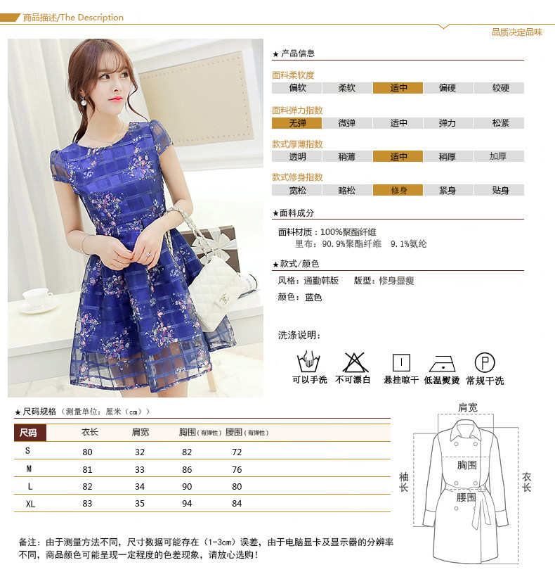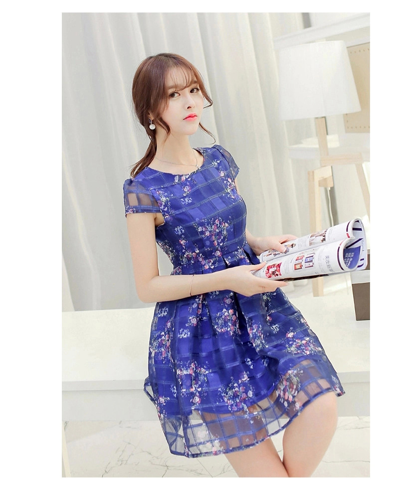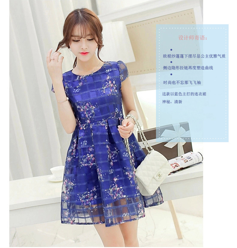 春夏新款女装韩版甜美欧根纱修身显瘦收腰公主连衣裙女