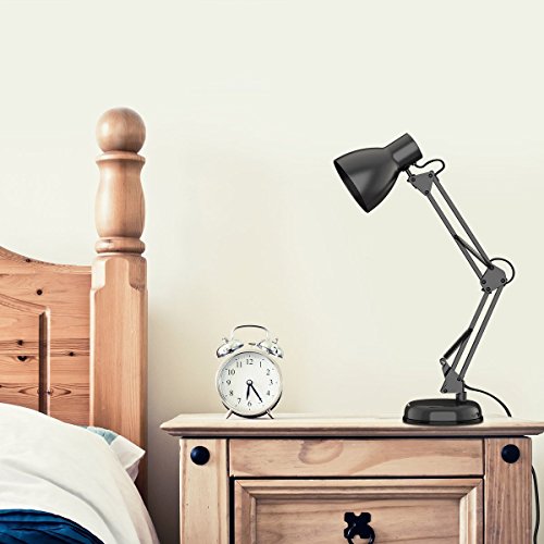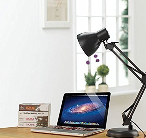 -. Feature : FLEXIBLE: Three joints( at the base, half way up the arm and the lamp head) two-stage twin arms. It allows you to easily adjust the light direction in almost any position / STYLE: led Long Swing Arm Desk Lamp. Harbor Architect Elune Stylish retro American Metal Design desk lamp,packed with round metal base,and extra C-type Clamp / REPLACEABLE BULB: With an E26 LED sized screw bulb, the bulb can be replaced as desired. You are allowed to replace a bulb that is suitable for the E26 screw base and the maximum permissible wattage of the fuse is 40W(LED Bulb Included) / QUALIFIED MATERIAL: With our qualified metal material on the lamp swing arm and lamp head as well as the grey painted shell, it's a durable and delicate addition in your desk,for study relaxing writing painting drafting desk / ADJUSTABLE RANGE: The lamp can be adjusted to an overall height of 15'' and 340 degree Rotation.The max opening of the adjustable c-clamp is up to 2.15'', and it can be clipped onto almost any table, shelves that are vertical or horizontal