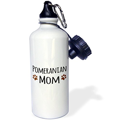 -. Title : 3dRose wb_154175_1 "Pomeranian Dog Mom-Pom Doggie by breed-muddy brown paw P.R.Ints-doggy lover pet owner mama love" Sports Water Bottle, 21 oz, White