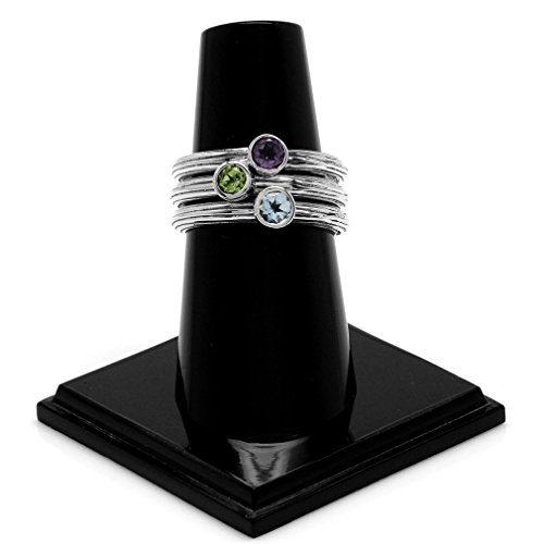 -. Title : Natural Amethyst, Peridot & Blue Topaz 925 Sterling Silver 3-Pc Stack/Stackable Textured Band Ring