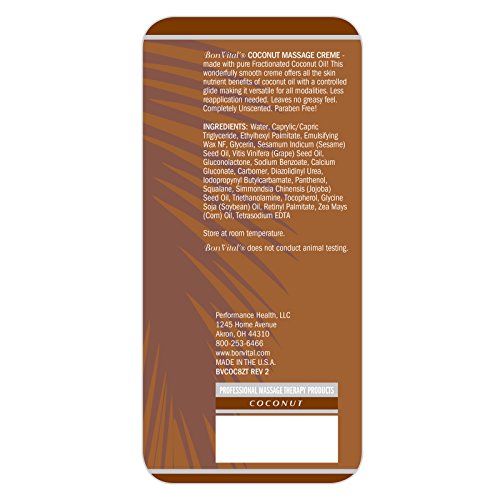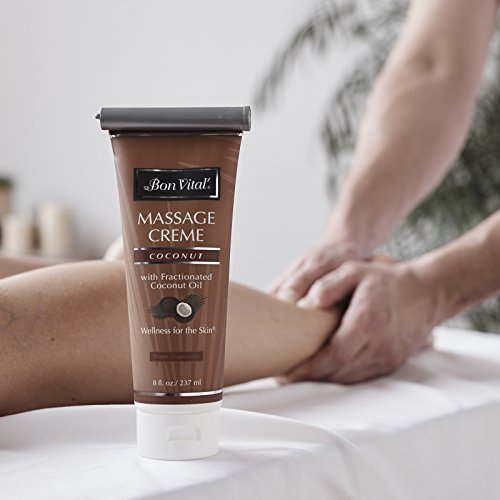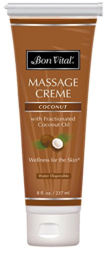Bon Vital' Coconut Massage Crème Made with 100% Pure Fractionated Coconut Oil, Massage Cream & Moisturizer to Repair Dry Skin, No Greasy Feel, Anti-Aging Cream for Professional Massage, 8 Ounce Tube