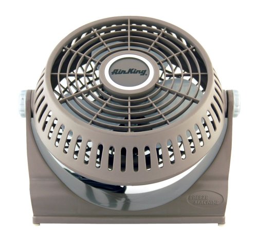 The Air King 9525 9-Inch 2-Speed Pivot Fan is ideal for use in offices, production lines, kitchens, beauty salons, toll booths, stores and anywhere else space is limited. The 9-inch, 3-blade fan is constructed of impact resistant plastic with chemical resistant polypropylene blades for long-lasting durability. The rotary switches located on the back allow you to turn the fan on or off and change between (2) speeds. The 1/100-horsepower, permanently lubricated motor moves 430-CFM on high and 340-CFM on low. The pivoting fan head allows you to direct the air flow exactly where it is needed most. Additionally, this fan is ETL and OSHA approved and a 6-foot, 3-conductor type SJT power cord is provided for long reach. The fan measure 13-inches long by 6-inches wide by 13-inches high and weighs 4.1-pounds. The Air King 9525 9-Inch 2-Speed Pivot Fan comes with a 1-year limited warranty. Air King offers a full line of industrial grade and commercial grade air circulating fan solutions to meet almost any need you might have. Whether your need is in industrial settings such as manufacturing plants and warehouses or more commercial setting such as offices, schools or hospitals - Air King has the perfect solution for you. Powerful motors that last for years and years are what Air King's Air Circulators have come to been know as and we are not stopping now. Visit www.amazon.com/airking for more information on Air King and our extensive line of products.Feature