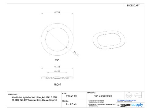 Wave Washers, High Carbon Steel, 3 Waves, Inch, 0.531" ID, 0.734" OD, 0.009" Thick, 0.03" Compressed Height, 4lbs Load, (Pack of 10)