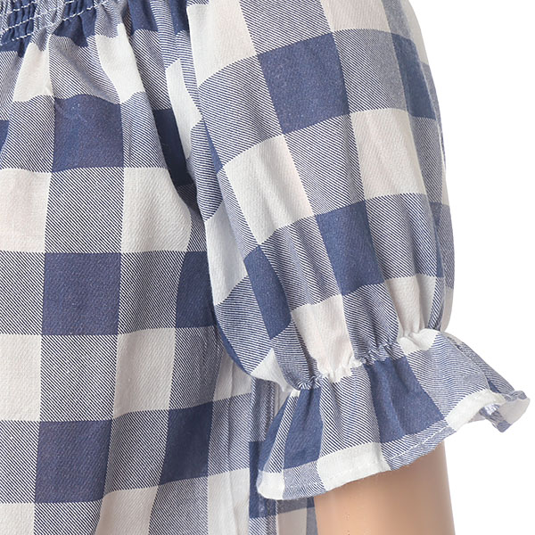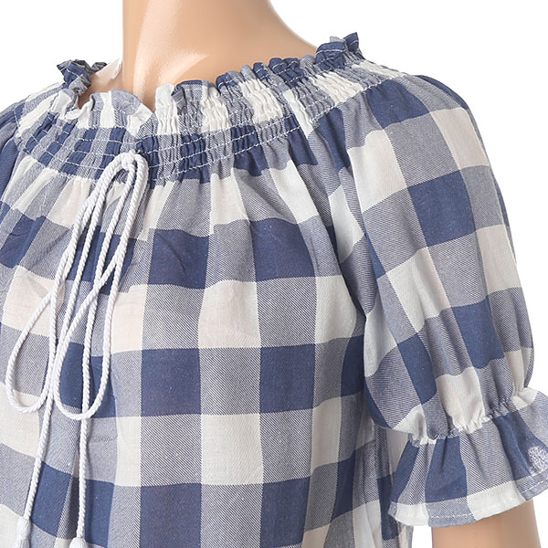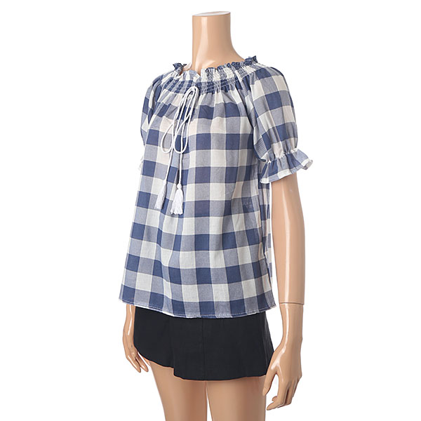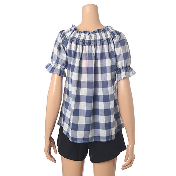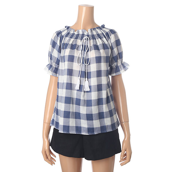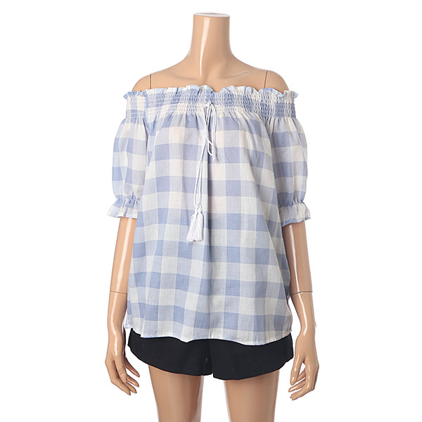 시원한 체크 패턴 포인트 오프숄더 블라우스