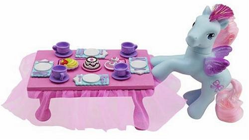 -. Feature : Seat your ponies (sold separately) at this elegant dining room table for a totally fabulous meal of dessert! / Try serving up tea from the teacart that actually rolls! / Place the placemats on the pretty tablecloth! / Adorable pony dining room playset features a table that “magically” flips over! / Includes table, 4 placemats, 6 desserts, teacart, 4 cups, 4 saucers and teapot