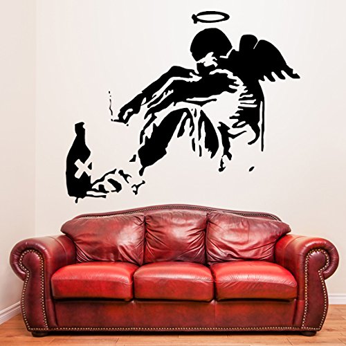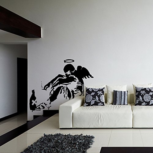 -. Title : ( 39'' x 32'') Banksy Vinyl Wall Decal Giant Fallen Angel with Rome Bottle / Street Graffiti Art Canvas Decor Sticker + Free Random Decal Gift!