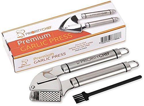 - The Only Garlic Press You Will Ever Need! - Made from solid, industrial strength, rust proof 18/10 SS304 stainless steel. The Priority Chef garlic masher is strong and robust, and will last a lifetime - guaranteed! It is such a strong tool that you can even mince ginger too!