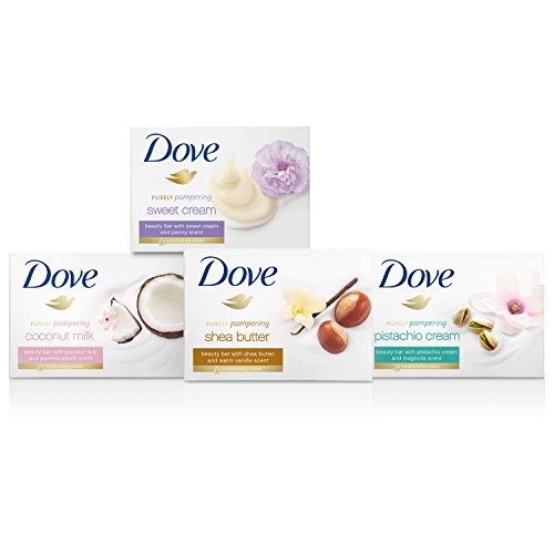-. Binding : Health and Beauty -. Brand : Dove -. EAN : 0011111076273 -. Feature : Leaves skin soft, smooth and even toned / Contains Dove 1/4 moisturizing cream and nourishing shea butter / Cleanses with a nourishing lather / Dove doesn't dry skin like soap / Dove Beauty Bar is the #1 choice of dermatologists -. Label : Dove -. Manufacturer : Dove -. Model : 10011111076270 -. NumberOfItems : 8 -. PackageQuantity : 1 -. ProductGroup : Pantry -. ProductTypeName : BEAUTY -. Publisher : Dove -. ReleaseDate : 2015-07-16 -. Studio : Dove -. Title : Dove Purely Pampering Beauty Bar, Shea Butter 4 oz, 8 Bar -. UPC : 011111076273