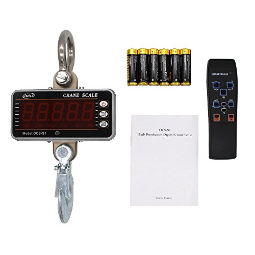 iDili CE Certified High Precision Stainless 1000KG 2000LBS 1T Aluminum Digital Crane Scale Heavy Duty Compact Hanging Scale OCS-S1 Smart Type LED Display 0.5kg with Remote