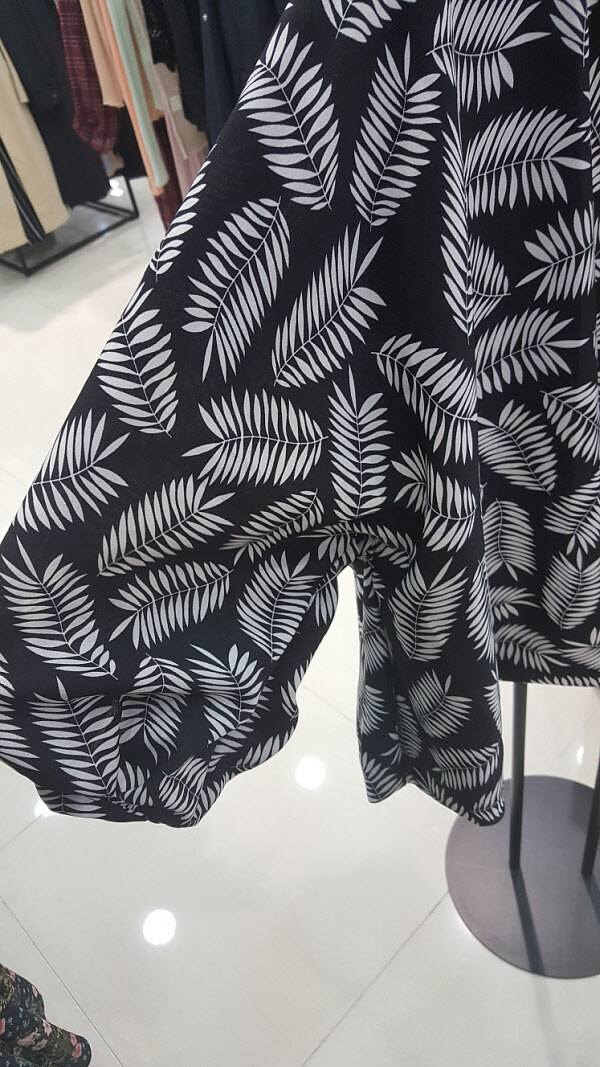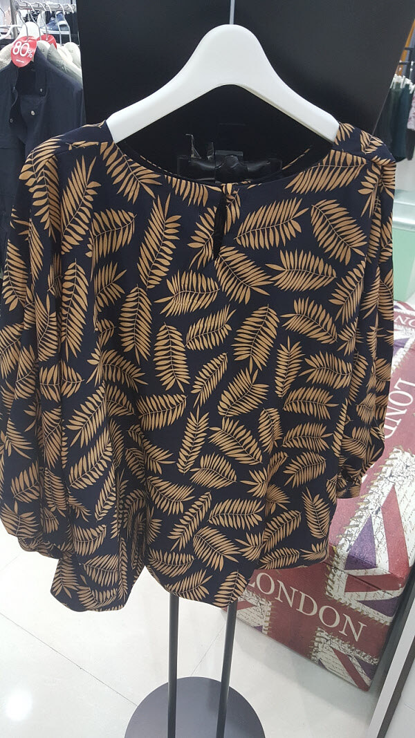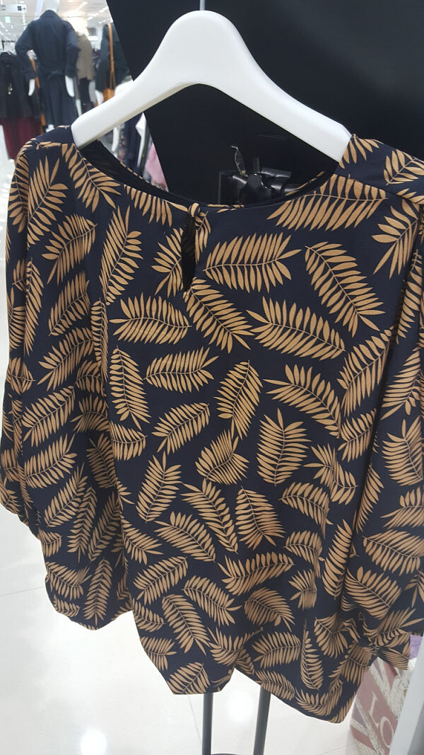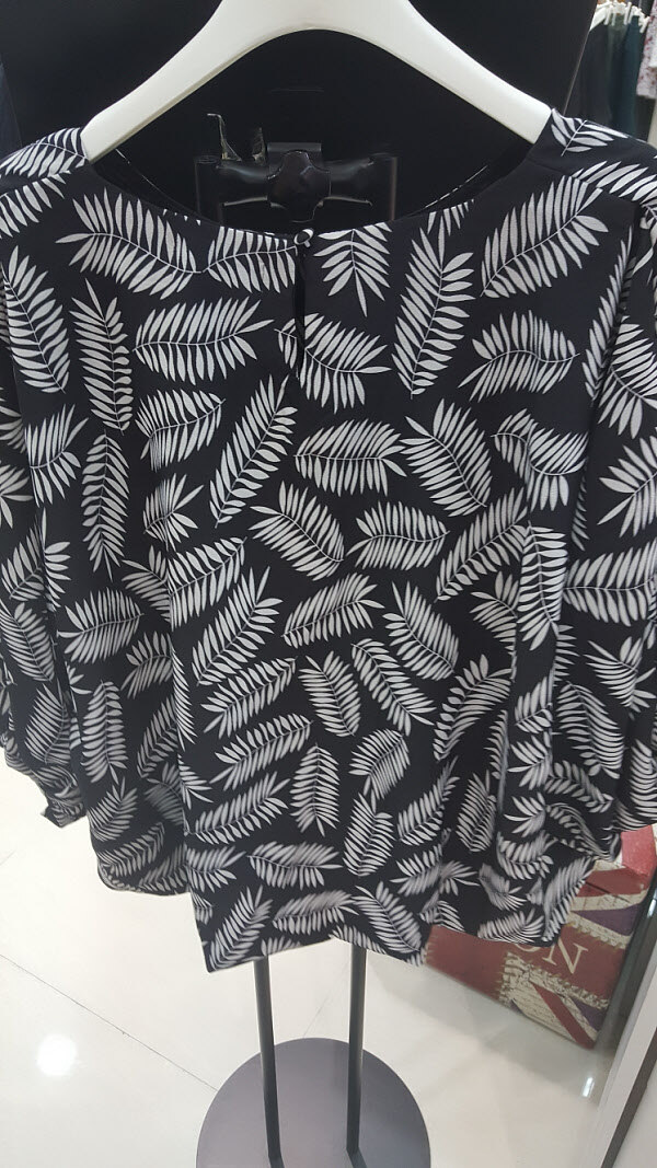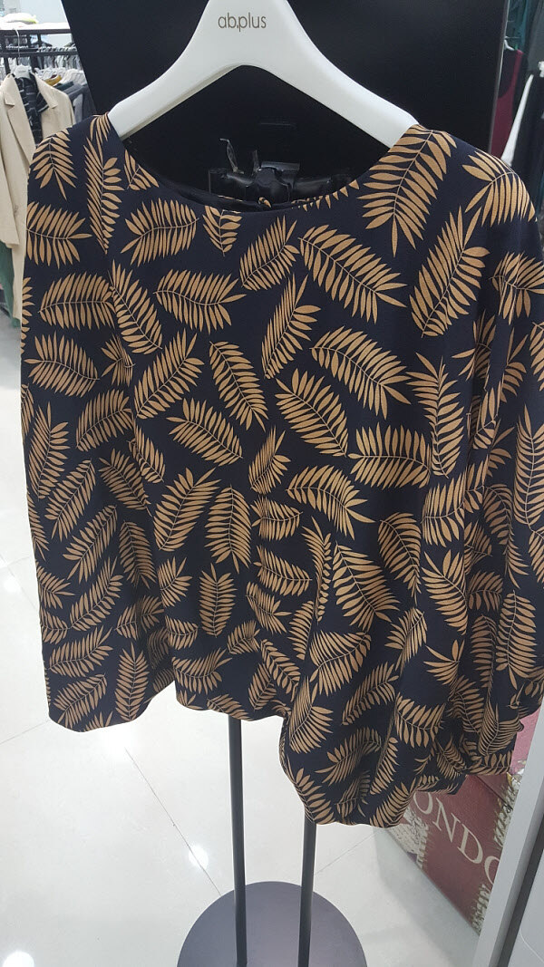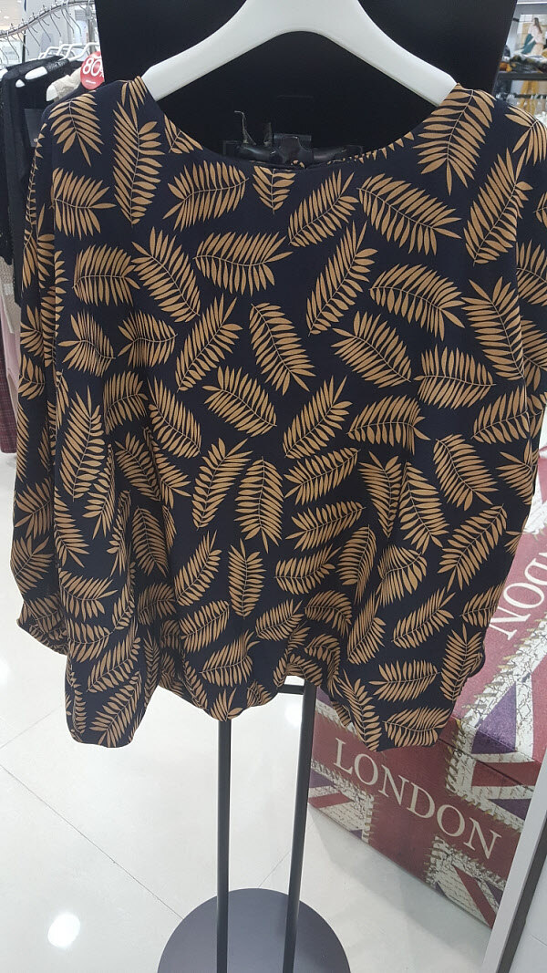 나뭇잎 프린팅이 들어간 가을분위기 블라우스 입니다.밑단이짧고 벙벙한 스타일 입니다~^^