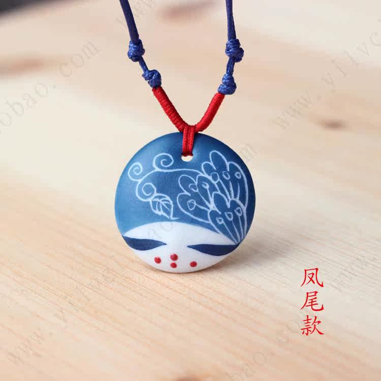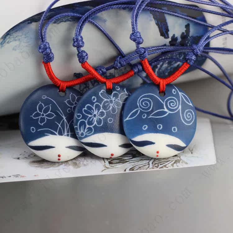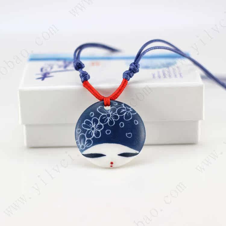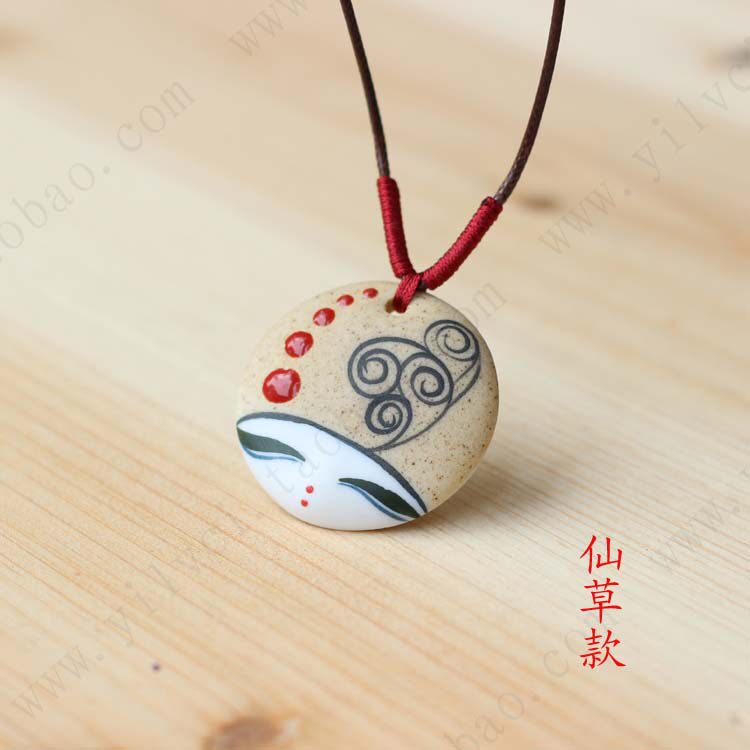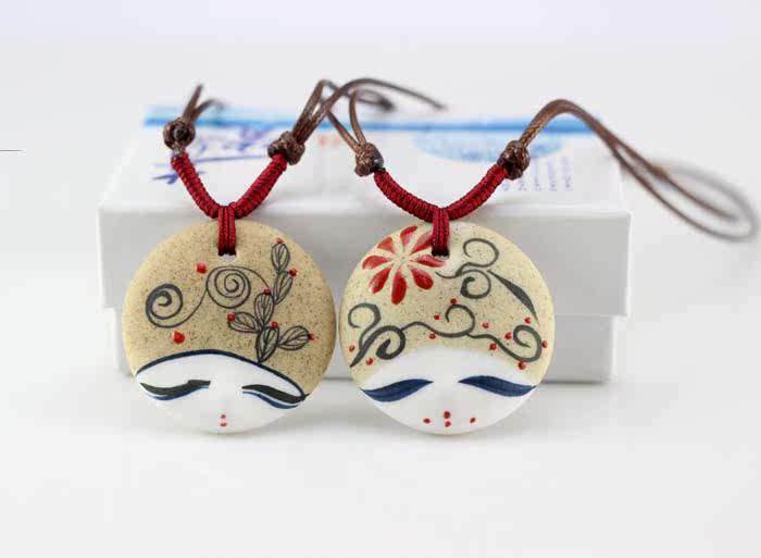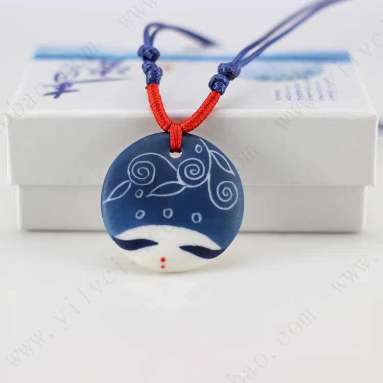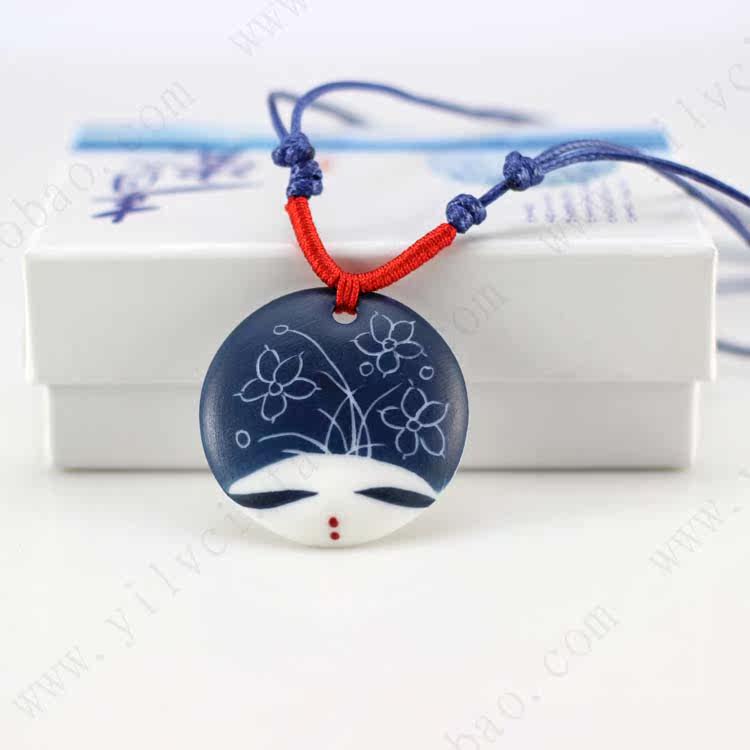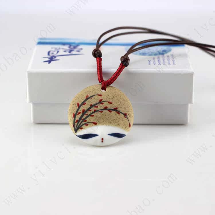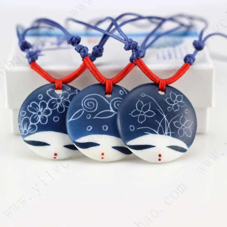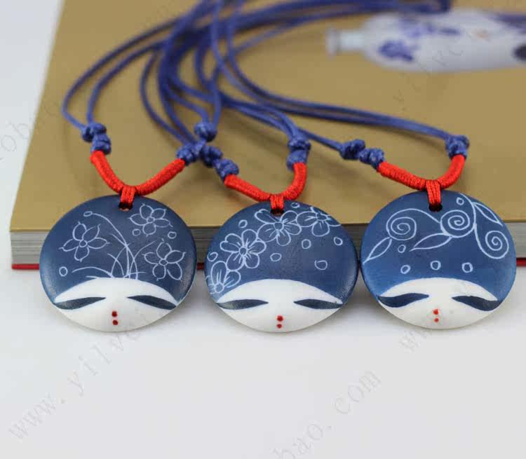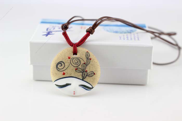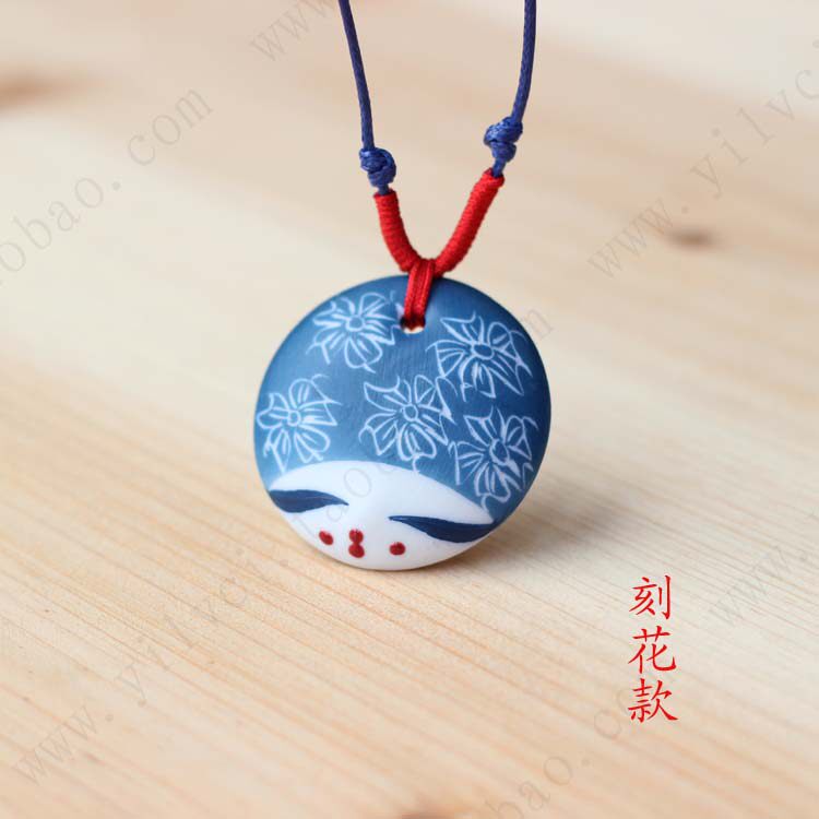 Ethnic hand carved pattern [head] beauty dress with ceramic jewelry pendant pendant