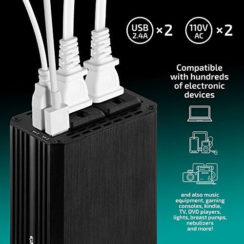 300W DC to AC inverter with DUAL 110AC outlets and dual 2.4A USB ports enable the simultaneous FAST charging of up to 4 items together.