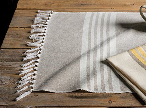 - Title : Now Designs Fringed Table Runner, Border Stripe Gray