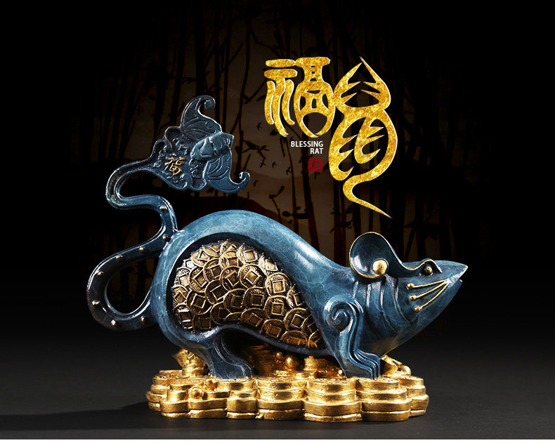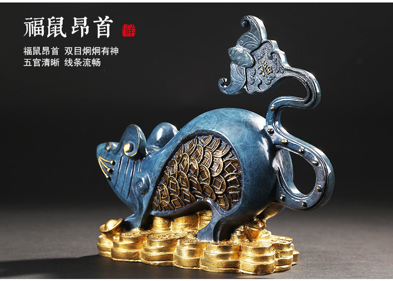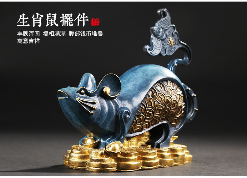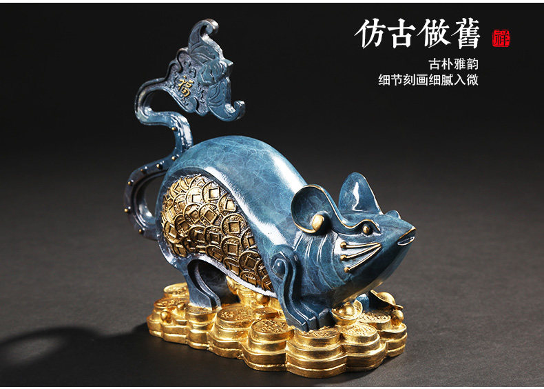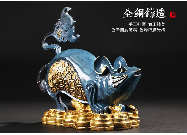 铜欣祥 彩铜蝙蝠鼠招财客厅酒柜家居装饰品纯铜蝙蝠生肖鼠摆件